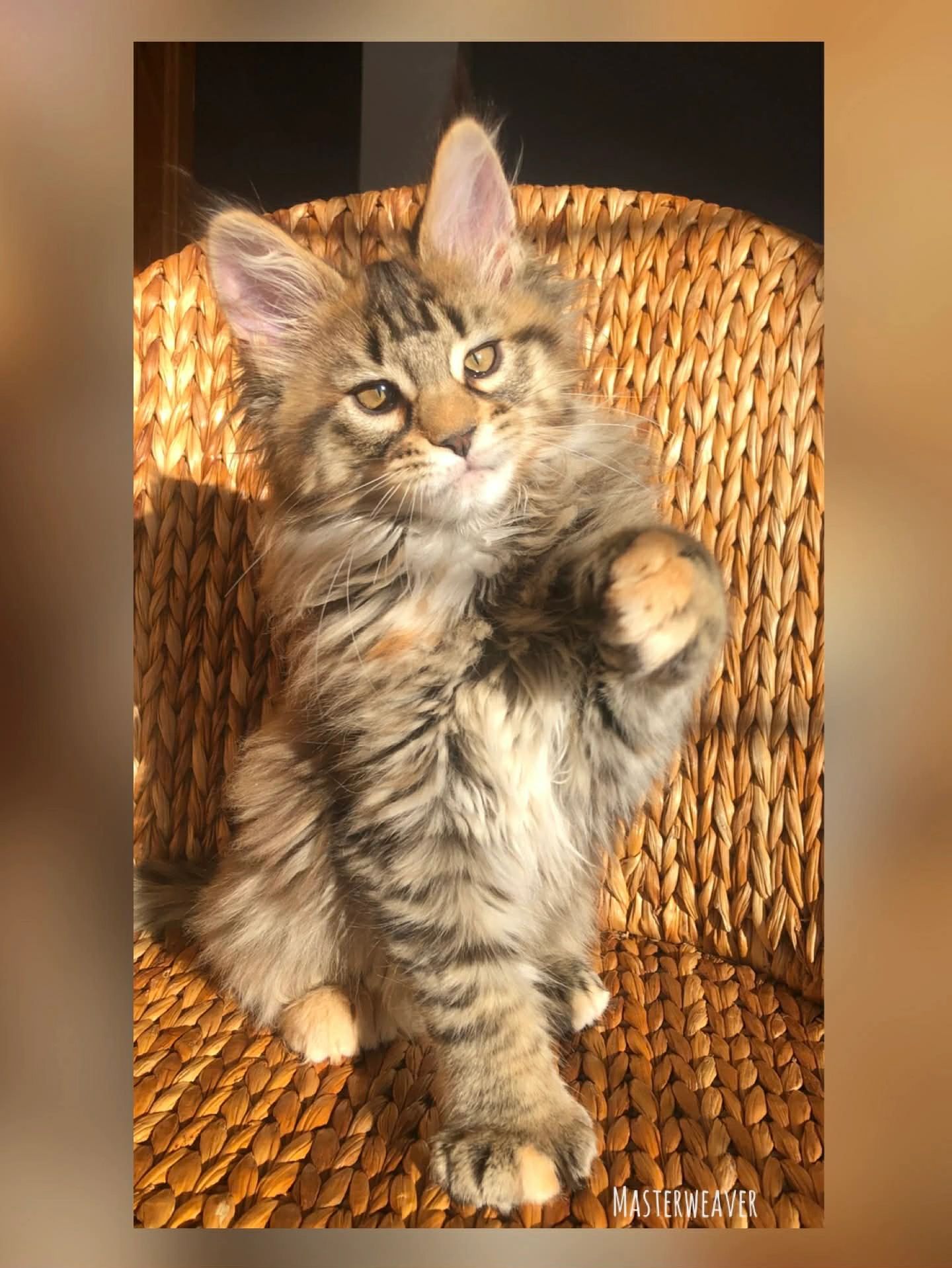This stunning polydactyl brown torbie has already completely stolen our hearts. With her soft purrs, gentle spirit, and those adorable extra toes, she is truly something special.